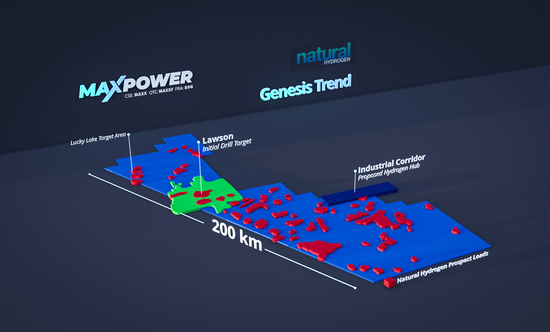 MAX Power Mining Corp. (CSE: MAXX; OTC: MAXXF; Frankfurt: 89N) has announced the discovery of a large new Natural Hydrogen target area named Lucky Lake, located in the northwest corner of the 200-km-long Genesis Trend in southern Saskatchewan.